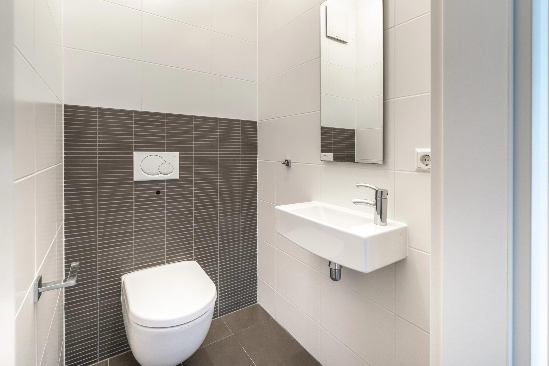 Entrance with built-in cupboards - large living room with lounge/dining room and open kitchen (±45 m²) - 2 bedrooms (16 m² and 14.5 m²) - bathroom with double washbasin and WC - separate WC - storeroom.